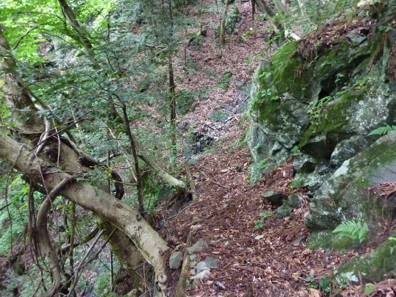 その仕事ですが、ハイキングコースが荒れて危険にさらされているという話を受け、現場に行ったわけです。間伐材を使って土止めをしている個所もありましたが、一歩外せば崩れ落ちそうな個所もあり、とても山歩きをするような道とは言えませんでした。私有地の山林の中にある道のようですが、地図上に道がある限り、保全対策は必要でしょう。こうした道が奥多摩には相当あるんだと、この道を歩いて感じました。